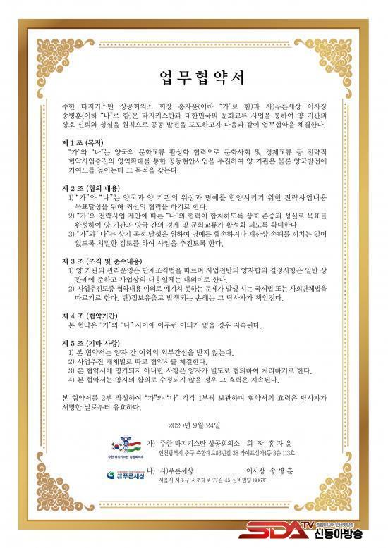 À̳¯ (»ç)Ǫ¸¥¼¼»ó ¼Ûº´ÈÆ ÀÌ»çÀåÀº ŸÁöŰ½ºÅº »ó°øÈ¸ÀǼҸ¦ ÅëÇÏ¿© ¾ç±¹ÀÇ °íÀ¯¹®È»ç¾÷À» Æø ³Ð°Ô ¹ßÀü½ÃÄÑ ³ª°¥ °ÍÀ» »óÈ£ Çù¾àÇϱâ·Î Çß´Ù°í ¹àÇû´Ù.