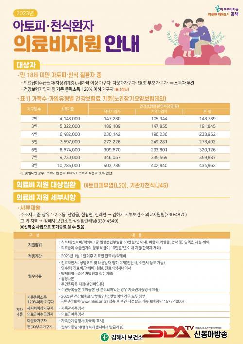 ¾ÆÅäÇÇ¡¤Ãµ½Ä ȯ¾ÆÀÇ Ä¡·á¡¤°ü¸®¿¡ ÇÊ¿äÇÑ ÀÇ·áºñ¸¦ Áö¿øÇÔÀ¸·Î½á °æÁ¦Àû ºÎ´ãÀ» °æ°¨ÇÏ°í »îÀÇ Áú °³¼±¿¡ ±â¿©Çϱâ À§ÇØ ¸¶·ÃµÈ ÀÌ »ç¾÷Àº °ü³» 18¼¼ ¹Ì¸¸ ¾ÆÅäÇÇ Ãµ½Ä ȯÀÚ Áß ÁßÀ§¼Òµæ 120% ÀÌÇÏ °¡±¸ÀÚ¸é ½ÅûÀÌ °¡´ÉÇÕ´Ï´Ù.