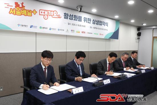 °ø°ø¹è´Þ¾Û Ȱ¼ºÈ¸¦ ÅëÇØ Áö¿ª°æÁ¦¿¡ Ȱ·ÂÀ» ºÒ¾î³Ö±â À§ÇØ ¼¿ï½Ã, ÀÚÄ¡±¸, ¹è´Þ¼ºñ½º ¿î¿µ¾÷ü µî ¿©·¯ ±â°üÀÌ Âü¿©ÇÑ À̹ø Çù¾à½Ä¿¡´Â ¿À¼¼ÈÆ ¼¿ï½ÃÀå, ±èÁø¸¸ °³²±¸ ºÎ±¸Ã»Àå, ¹ÚÁØÈñ °ü¾Ç±¸Ã»Àå, ±èÇõ ¿µµîÆ÷±¸ ºÎ±¸Ã»Àå µî ½Ã¹üÀÚÄ¡±¸ ´ëÇ¥, ¡®¶¯°Ü¿ä¡¯ ¾ÛÀ» ¿î¿µÇÏ´Â ½ÅÇÑÀºÇà ¹× ¹è´Þ´ëÇà»ç µî Çù¾à±â°ü °ü°èÀÚ µîÀÌ Âü¼®Çß´Ù.