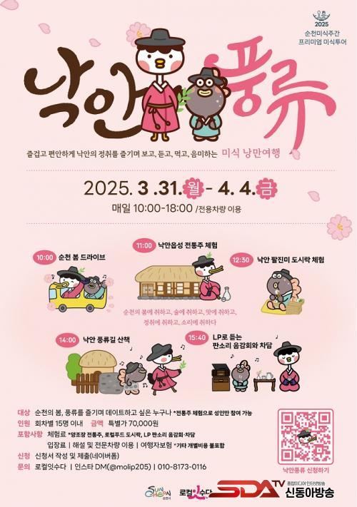À̹ø Åõ¾î´Â °¡Á·, Ä£±¸, ¿¬Àΰú ÇÔ²² º½ÀÇ Á¤Ã븦 Áñ±â°í ½ÍÀº ¼ºÀÎÀ» ´ë»óÀ¸·Î Çϸç, Âü°¡ºñ´Â ¡®¼øÃµ¹Ì½ÄÁÖ°£¡¯ Ưº°°¡ÀÎ 1ÀÎ 70,000¿øÀÌ´Ù. °¢ ȸÂ÷º°·Î ¼±Âø¼ø 15¸íÀ» ¸ðÁýÇϸç, ³×À̹ö Æû(https://naver.me/xDJHTn8u) ¶Ç´Â Æ÷½ºÅÍÀÇ QR Äڵ带 ÅëÇØ ½ÅûÇÒ ¼ö ÀÖ´Ù. ´çÀÏ ¿¹¾àÀº ºÒ°¡ÇϹǷΠ»çÀü ½ÅûÀÌ Çʼö´Ù.