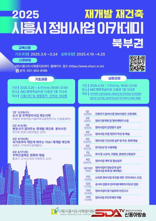 ¡®2025 ½ÃÈï½Ã Á¤ºñ»ç¾÷ ¾ÆÄ«µ¥¹Ì¡¯´Â Àç°³¹ß¤ýÀç°ÇÃà µî Á¤ºñ»ç¾÷¿¡ ´ëÇÑ ¿Ã¹Ù¸¥ ÀÌÇØ¸¦ µ½°í ²À ÇÊ¿äÇÑ Á¤º¸¸¦ Á¦°øÇÏ´Â °ÀÇ·Î, ¿ÃÇØ´Â »ó¹Ý±â ºÏºÎ±Ç°ú ÇϹݱ⠳²ºÎ±ÇÀ¸·Î ¿î¿µµÈ´Ù.