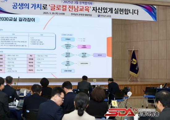 Á¤Ã¥ÇùÀÇȸ 1ºÎ¿¡¼´Â Àü³² ¼ö¾÷ ´ëÀüȯÀ» ¼±µµÇÏ´Â ¡®2030±³½Ç¡¯, ±³À°ÇàÁ¤µ¥ÀÌÅÍÅëÇÕ°ü¸®½Ã½ºÅÛ¿¡ ´ëÇÑ ÁÖÁ¦ ¹ßÇ¥¿Í ÅäÀǰ¡ ÁøÇàµÆ´Ù. 2ºÎ¿¡¼´Â 2025³â Á÷¼Ó±â°ü ¹× ±³À°Áö¿øÃ»º° ¿ªÁ¡°úÁ¦¸¦ °øÀ¯ÇÏ´Â ºÐÀÓ ÅäÀǸ¦ °¡Áø ÈÄ, ±Û·ÎÄà Àü³²±³À° ½ÇÇöÀ» À§ÇÑ Àüü ÇùÀǰ¡ À̾îÁ³´Ù.