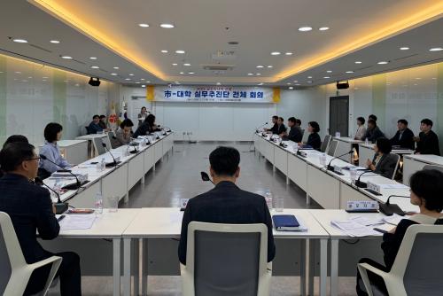 ȸÀÇ¿¡¼´Â ±³À°ºÎ ¿¹ºñÁöÁ¤ ½Åû¼ Á¦Ãâ¿¡ ¾Õ¼ °¢ ´ëÇÐÀÇ Çõ½Å±âȹ¼ ¹× ´ëÇ¥°úÁ¦ ¼³¸í, ±¤ÁÖ½Ã-´ëÇÐ-À¯°ü±â°ü °£ Çù·Â¹æ¾È µîÀ» ³íÀÇÇß´Ù. ¶Ç ³»½ÇÀÖ´Â ´ëÇÐ Çõ½Å±âȹ¼ ÀÛ¼º°ú ÀÌ¿¡ ÇÊ¿äÇÑ ±¤Áֽà ÀÚ·áÁ¦°ø µî À¯±âÀûÀÎ Çù·Âü°è ±¸Ãà ¹æ¾Èµµ ÇùÀÇÇß´Ù.