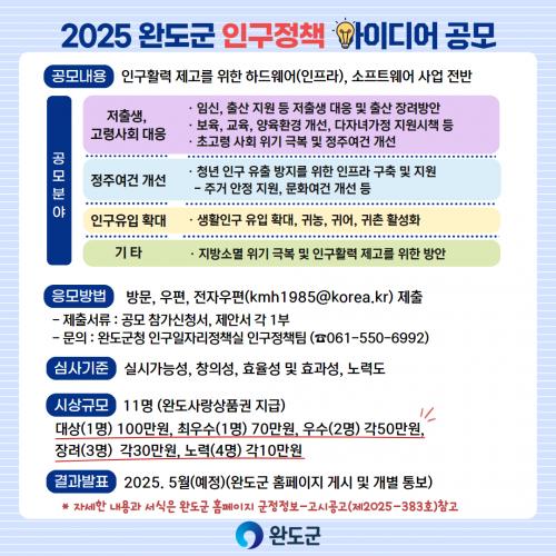 [½Åµ¿¾Æ¹æ¼Û=À̺´½Ä±âÀÚ] ¿Ïµµ±ºÀÌ ¡®2025 Àα¸Á¤Ã¥ ¾ÆÀ̵ð¾î °ø¸ðÀü¡¯ ±â°£À» ¿¬ÀåÇÑ´Ù.
