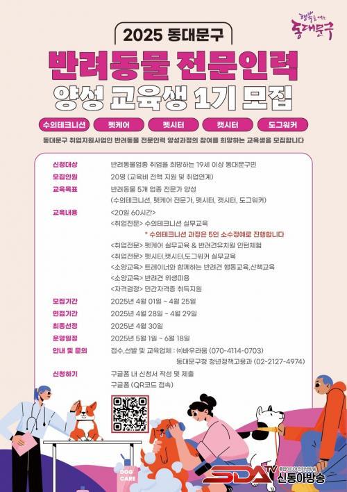 ¸ðÁý ´ë»óÀº ¹Ý·Áµ¿¹° °ü·Ã ¾÷Á¾ Ãë¾÷À» Èñ¸ÁÇÏ´Â µ¿´ë¹®±¸¹ÎÀÌ´Ù. ¸ðÁý Æ÷½ºÅÍ ³» QRÄڵ带 ÅëÇØ ¿Â¶óÀÎ Á¢¼ö¸¦ ÇØ¾ß ÇÑ´Ù. ÀÌÈÄ ¼·ù ¹× ¸éÁ¢ ½É»ç¸¦ °ÅÃÄ ÃÖÁ¾ 20¸íÀ» ¼±¹ßÇÒ ¿¹Á¤ÀÌ´Ù.
