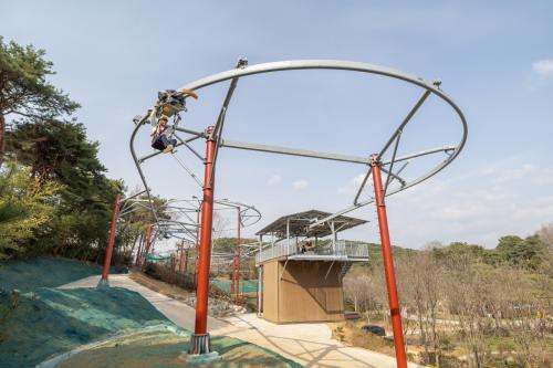 ·Ñ±Û¶óÀÌ´õ´Â Æ®·Ñ¸®¿¡ ž½ÂÇØ ³ôÀÌ 13m, ±æÀÌ 360mÀÇ ·¹ÀÏÀ» µû¶ó ÃÖ´ë ¼Óµµ 30km/h·Î ÇÏ´ÃÀ» °¡¸£¸ç ½£°ú Àú¼öÁö ÁÖº¯ÀÇ °æ°üÀ» °¨»óÇÒ ¼ö ÀÖ´Â ÀÌ»ö üÇè½Ã¼³ÀÌ´Ù.