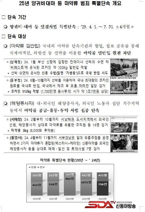 À̹ø Ưº°´Ü¼Ó¿¡¼´Â ÇØ¾ç°æÂûûÀÇ ÇØ»ó °¨½Ã¸Á°ú ¸¶¾à ŽÁö Àåºñ¸¦ Ȱ¿ëÇÏ¿© ºÒ¹ý ÇàÀ§¸¦ ÁýÁß ´Ü¼ÓÇÏ´Â ÇÑÆí, °ËÂû¡¤°æÂû¡¤°ü¼¼¡¤±¹Á¤¿ø µî À¯°ü±â°ü°ú Çù·ÂÇÏ¿©, ÇØ»óÀ» ÅëÇÑ ¸¶¾à·ù ¹Ð¹ÝÀÔÀ» »çÀü Â÷´ÜÇÒ °èȹÀÌ´Ù.