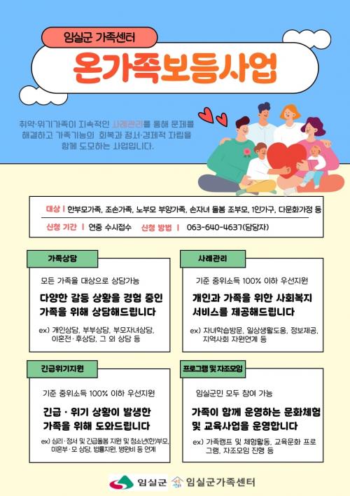 ½É ¹Î ±º¼ö´Â¡°¿Â°¡Á·º¸µë»ç¾÷Àº µµ¿òÀÌ Àý½ÇÇÑ °¡Á·µé¿¡°Ô ½ÇÁúÀûÀÎ Áö¿øÀ» Á¦°øÇÏ´Â »ç¾÷À¸·Î ÀӽDZº¿¡¼­µµ óÀ½ ½ÃÇàµÇ´Â ¸¸Å­ Áö¿ª ³» ´Ù¾çÇÑ ÀǰßÀ» ¹Ý¿µÇÏ¿© ³»½Ç ÀÖ°Ô ¿î¿µÇÒ °èȹ¡±À̶ó¸ç¡°¾ÕÀ¸·Îµµ À§±â °¡Á·À» À§ÇÑ Áö¼ÓÀûÀÎ Áö¿øÀ» ¾Æ³¢Áö ¾Ê°Ú´Ù¡±°í ¸»Çß´Ù.