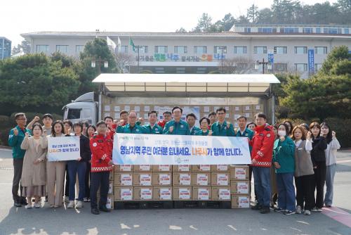 À̹ø Áö¿øÀº ÃÖ±Ù ´ë±Ô¸ð »êºÒ·Î »îÀÇ ÅÍÀüÀ» ÀÒ°í Àӽà ´ëÇǼҿ¡¼ »ýȰÇÏ´Â ÁֹεéÀÇ ºÒÆíÀ» ´ú¾îÁÖ±â À§ÇÑ °ÍÀ¸·Î ³ªÁֽô Áö¿ª Ư»êǰÀÌÀÚ °£Æí ½ÄǰÀÎ ´©·îÁö 150»óÀÚ(1,200¸¸ ¿ø »ó´ç)¸¦ Áö¿øÇϱâ·Î Çß´Ù.