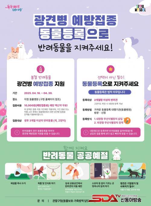 [½Åµ¿¾Æ¹æ¼Û µ¿´ë¹®±¸=À̽ŵ¿±âÀÚ] ¼­¿ï µ¿´ë¹®±¸´Â ±¤°ßº´ ¿¹¹æÀ» À§ÇØ 4¿ù 16ÀÏ(¼ö)ºÎÅÍ 30ÀÏ(¼ö)±îÁö °ü³» µ¿¹°º´¿ø 30°³¼Ò¿¡¼­ ¡®º½Ã¶ ±¤°ßº´ ¿¹¹æÁ¢Á¾¡¯À» ½Ç½ÃÇÑ´Ù.