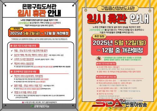 ÀºÆò±¸¸³µµ¼­°üÀº ³»´Þ 2ÀϺÎÅÍ ¿À´Â 12¿ù ¸»±îÁö ÈÞ°üÇϸç, Áõ»êÁ¤º¸µµ¼­°üÀº ³»´Þ 12ÀϺÎÅÍ 12¿ù ¸»±îÁö ÈÞ°üÇÒ ¿¹Á¤ÀÌ´Ù. ÈÞ°üÇÏ´Â µ¿¾È µµ¼­°üÀº ÀÌ¿ëÀÚµéÀÇ ºÒÆíÀ» ÃÖ¼ÒÈ­Çϱâ À§ÇØ ´Ù¾çÇÑ ´ëü ¼­ºñ½º¸¦ °èȹÇϰí ÀÖ´Ù.
