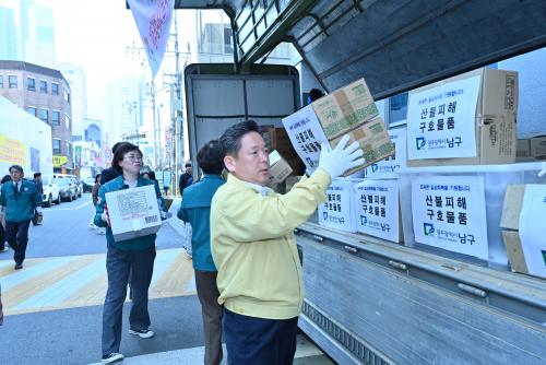 ÇÑÆí ³²±¸´Â Áö³ 1ÀÏ ´ëÇü »êºÒ·Î Å« ÇÇÇØ¸¦ º» °æºÏ ÀǼº ±º¹ÎÀÇ ÀÏ»ó ȸº¹À» À§ÇØ 3,736¸¸¿ø »ó´çÀÇ ±ä±Þ ±¸È£ ¹°Ç°À» Áö¿øÇÑ ¹Ù ÀÖ´Ù.