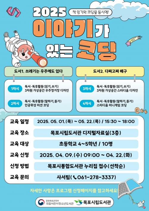 [½Åµ¿¾Æ¹æ¼Û=±èÈ£¼º±âÀÚ] ¸ñÆ÷½Ã¸³µµ¼­°ü(°üÀå ÃÖÁø¼ö)Àº ±¹¸³¾î¸°ÀÌû¼Ò³âµµ¼­°üÀÌ ÁÖÃÖÇÏ´Â '2025³â À̾߱Ⱑ ÀÖ´Â ÄÚµù' »ç¾÷ÀÇ ¿î¿µ±â°üÀ¸·Î ¼±Á¤µÇ¾ú´Ù°í ¹àÇû´Ù.