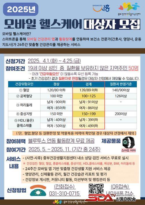 Âü¿©¸¦ ¿øÇÏ´Â ½Ã¹ÎÀº Áߺΰǰ»ýȰÁö¿ø¼¾ÅÍ ÀüÈ(031-310-0715) ½Åû ¶Ç´Â È«º¸¹°ÀÇ Á¤º¸¹«´Ì(Å¥¾ËÄÚµå)¸¦ ÅëÇØ¼ ½ÅûÇÒ ¼ö ÀÖ´Ù. ½Åû ÈÄ ½ÃÈï½Ãº¸°Ç¼Ò¿¡¼ °³º° ¿¬¶ôÀ» ÅëÇØ °Ç°°ËÁø ÀÏÁ¤À» ¾È³»Çϸç, °ËÁø °á°ú¿¡ µû¶ó ÃÖÁ¾ ´ë»óÀÚ°¡ ¼±Á¤µÈ´Ù.