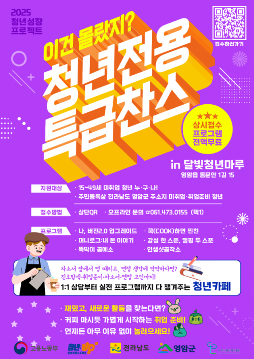 °í¿ë³ëµ¿ºÎ, Àü¶ó³²µµ, (»ç)»çȸ°í¿ëÁ¤Ã¥°³¹ß¿ø°ú ÇÔ²²ÇÏ´Â ÀÌ ÇÁ·ÎÁ§Æ®´Â, Áö¿ª 15~49¼¼ÀÇ ¹ÌÃë¾÷ û³â¿¡°Ô Ãë¾÷, Àڱ⠼ºÀå ±âȸ µîÀ» Áö¿øÇÏ´Â ±³À°ÀÇ ÀåÀÌ´Ù.