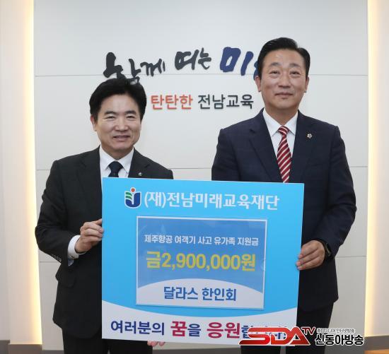 [½Åµ¿¾Æ¹æ¼Û Àü³²=À̽ŵ¿±âÀÚ] ´Þ¶ó½º ÇÑÀÎȸ°¡ 21ÀÏ Àü³²¹Ì·¡±³À°Àç´Ü¿¡ 2,000´Þ·¯(ÇÑÈ ¾à 290¸¸ ¿ø)ÀÇ À§·Î ¼º±ÝÀ» Àü´ÞÇß´Ù.
