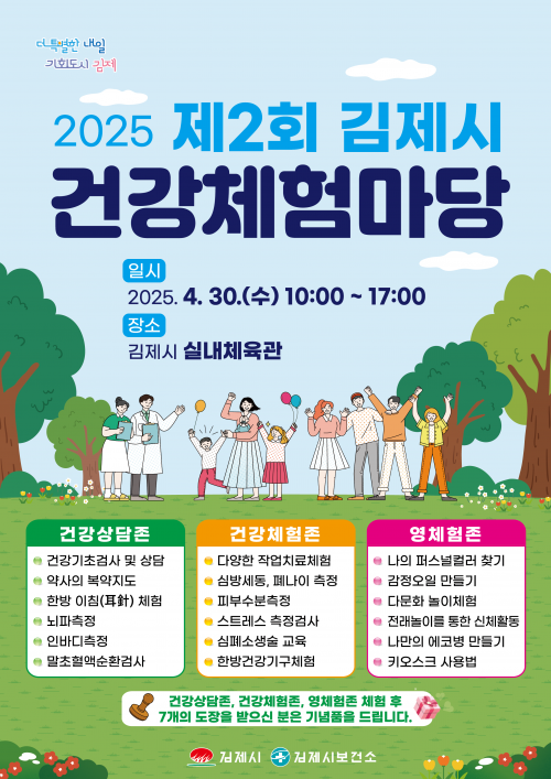 22ÀÏ ±èÁ¦½Ã(½ÃÀå Á¤¼ºÁÖ)¿¡ µû¸£¸é º¸°ÇÀÇ ³¯À» ±â³äÇÏ¸ç ¿¸®´Â Á¦2ȸ ±èÁ¦½Ã °Ç°Ã¼Ç踶´çÀº 26°³ÀÇ ´Ù¾çÇÑ ±â°üÀÌ Âü¿©ÇØ °Ç°°ú °ü·ÃµÈ Áö½Ä Àü´Þ°ú üÇèÀÇ ÀåÀ» Á¦°øÇÏ°í ½Ã¹Îµé¿¡°Ô °Ç°»ýȰ½ÇõÀÇ Çʿ伺À» ¾Ë¸®°íÀÚ ÁغñµÆ´Ù.