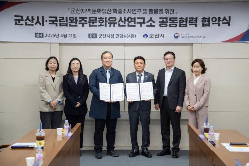 Áö³ 21ÀÏ ¿¸° Çù¾à½Ä¿¡¼ ±º»ê½Ã¿Í ±¹¸³¿ÏÁÖ¹®ÈÀ¯»ê¿¬±¸¼Ò´Â »óÈ£ È£ÇýÀûÀÎ Çù·Â °ü°è·Î ¡ã ±º»êÁö¿ª ¹®ÈÀ¯»ê Á¶»ç¿¬±¸ Çù·Â ¹× °øµ¿»ç¾÷ °³¹ß ÃßÁø ¡ã ±º»êÁö¿ª ¹®ÈÀ¯»ê Ȱ¿ëÀ» À§ÇÑ Çмú ¹× ÇàÁ¤Áö¿ø Çù·Â ¡ã ±âŸ ¹®ÈÀ¯»ê °¡Ä¡ Á¦°í¸¦ À§ÇÑ Á¦¹Ý Ȱµ¿ µîÀ» ÃßÁøÇϱâ·Î ¾àÁ¤Çß´Ù.