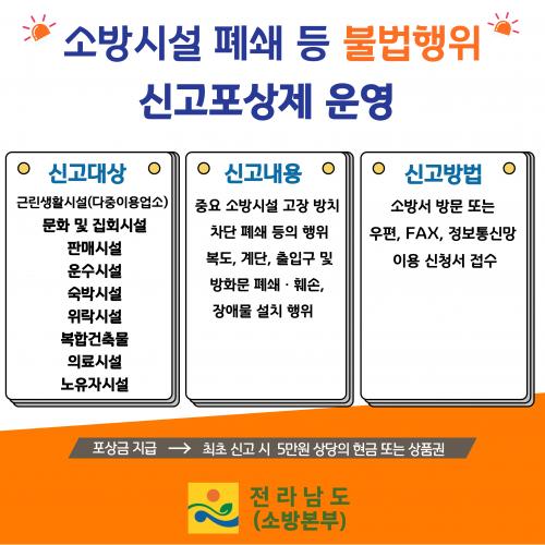 ½Å°í´Â ±¹¹Î½Å¹®°í ¶Ç´Â ³ªÁÖ¼Ò¹æ¼ ´©¸®ÁýÀ» ÅëÇØ Á¢¼ö °¡´ÉÇϸç, ½Å°í ³»¿ëÀÌ »ç½Ç·Î È®ÀÎµÇ°í ¿ä°ÇÀ» ÃæÁ·ÇÒ °æ¿ì, °Ç´ç 5¸¸ ¿ø »ó´çÀÇ Æ÷»ó±ÝÀÌ Áö±ÞµÈ´Ù.