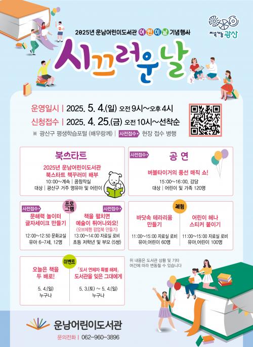 Çà»ç ½ÅûÀº 25ÀÏ ¿ÀÀü 10½ÃºÎÅÍ ±¤»êÆò»ýÇнÀÆ÷ÅÐ(https://edu.gwangsan.go.kr/)¿¡¼ °¡´ÉÇϸç, ÀÚ¼¼ÇÑ ³»¿ëÀº ±¤»ê±¸ÅëÇÕµµ¼°ü ´©¸®Áý(https://lib.gwangsan.go.kr/) ¶Ç´Â ¿î³²¾î¸°À̵µ¼°ü(062-960-3896)À¸·Î ¹®ÀÇÇÏ¸é µÈ´Ù.