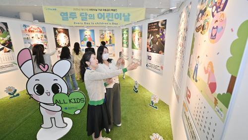 ƯÈ÷ ¼±¸Ã»¾î¸°ÀÌÁý ¾Æµ¿µéÀÌ ¡®¿ì¸®¿¡°Ô´Â ¸ÅÀÏÀÌ ¾î¸°À̳¯¡¯À̶ó´Â ÁÖÁ¦·Î ±×¸° ±×¸²Àº °ü¶÷°´ÀÌ ¾Æµ¿ÀÇ ´«³ôÀÌ¿¡¼ º» ²Þ°ú ±Ç¸®¸¦ »ý»ýÇÏ°Ô ´À³¥ ¼ö ÀÖµµ·Ï Çß´Ù. Àü½ÃÀå °÷°÷¿¡´Â À¯¿£¾Æµ¿±Ç¸®Çù¾àÀÇ ÁÖ¿ä Á¶Ç×°ú ¾Æµ¿±Ç¸®¿¡ °üÇÑ ¸í¾ðÀ» ¹èÄ¡ÇØ ¾î¸°À̸¦ Á¸ÁßÇÏ°í º¸È£ÇÏ´Â »çȸÀû ºÐÀ§±â¸¦ È®»êÇÏ´Â °ø°£À¸·Î ²Ù¸ì´Ù.