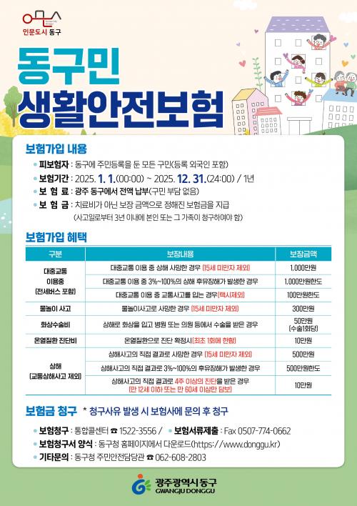 ¡®µ¿±¸¹Î »ýȰ¾ÈÀüº¸Ç衯Àº º¸Çè·á Àü¾×À» ±¸(Ï¡)¿¡¼ ºÎ´ãÇϸç, º¸Àå ´ë»óÀº µî·Ï ¿Ü±¹ÀÎÀ» Æ÷ÇÔÇÑ µ¿±¸¿¡ Áֹεî·ÏÀ» µÐ ¸ðµç ±¸¹ÎÀ¸·Î¼, º°µµ ÀýÂ÷ ¾øÀÌ ÀüÀÔ¡¤ÀüÃ⠽à ÀÚµ¿À¸·Î °¡ÀÔ¡¤Å»Åð µÈ´Ù.