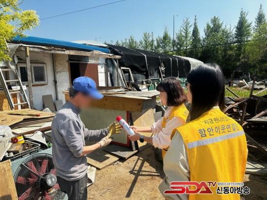 ƯÈ÷, ÇÔ¾È ÀÌ¿ô¿¬°á´ÜÀÌ °íµ¶»ç À§ÇèÀÚ °¡Á¤¿¡ Á÷Á¢ ¹æ¹®ÇØ ÈÀç¾ÈÀü¹°Ç°(½ºÇÁ·¹ÀÌÇü ¼Òȱâ)¸¦ Àü´ÞÇϰí, »ç¿ë¹ý ±³À°°ú ÇÔ²² ¾ÈºÎ¸¦ È®ÀÎÇß´Ù. ¶ÇÇÑ ¹æ¹® »ó´ãÀ» ÅëÇÑ º¹Áö ¼ºñ½º ¿¬°è¸¦ ÁøÇàÇØ ´Ü¼øÇÑ ¹°Ç° Áö¿øÀ» ³Ñ¾î »çȸÀû °ü°è ȸº¹ ¹× ¿¹¹æÀû µ¹º½ ü°è ±¸ÃàÀ» ¸ñÇ¥·Î Çß´Ù.