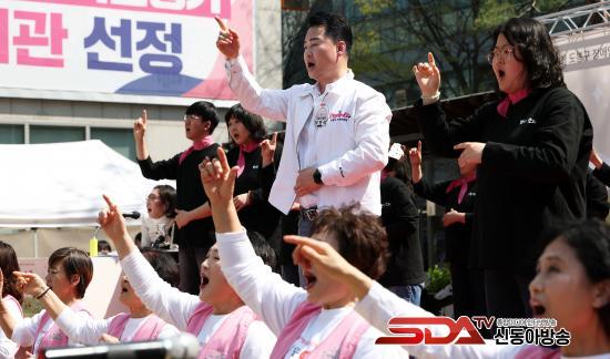 ¿À¾ð¼® µµºÀ±¸Ã»ÀåÀÌ Áö³­ µµºÀ±¸ Àå¾ÖÀÎÀÇ ³¯ Çà»ç¿¡¼­ ±¸¹Îµé°ú ÇÔ²² ¼ö¾î·Î °ø¿¬À» Çϰí ÀÖ´Ù(2025. 4. 11. µµºÀ±¸Ã» ±¤Àå)
