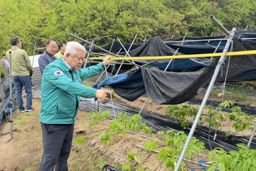 ¹«ÁÖ±º³ó¾÷±â¼ú¼¾ÅÍ Á÷¿øµé°ú ÇÔ²² ÇöÀåÀ» ãÀº ȲÀÎÈ« ±º¼ö´Â ¡°³ó»ç°¡ ÇÑâÀÏ ¶§ ¹ß»ýÇÑ ÇÇÇØ¶ó ¾ÈŸ±î¿î ¸¶À½ÀÌ Å©´Ù¡±¶ó¸ç ¡°ÇàÁ¤ÀûÀ¸·Î ÇÒ ¼ö ÀÖ´Â ¸ðµç º¹±¸¿Í Áö¿øÀÌ ½Å¼ÓÇÏ°Ô ÀÌ·ïÁöµµ·Ï ÃÖ¼±À» ´ÙÇϰڴ١±¶ó°í ¹àÇû´Ù.