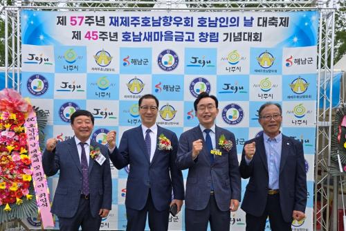 À±º´Å ½ÃÀåÀº ¡®Á¦57ÁÖ³â Àç)Á¦ÁÖÈ£³²Çâ¿ìȸ È£³²ÀÎÀÇ ³¯ ´ëÃàÁ¦¡¯ ¹× ¡®Á¦45ÁÖ³â È£³² »õ¸¶À»±Ý°í ⸳ ±â³ä´ëȸ¡¯¿¡ Âü¼®ÇØ ÃâÇâ È£³²Àε鿡°Ô °íÇâ ³ªÁÖÀÇ ¹ßÀüÀ» À§ÇÑ °ü½É°ú Çù·ÂÀ» ¿äûÇß´Ù.