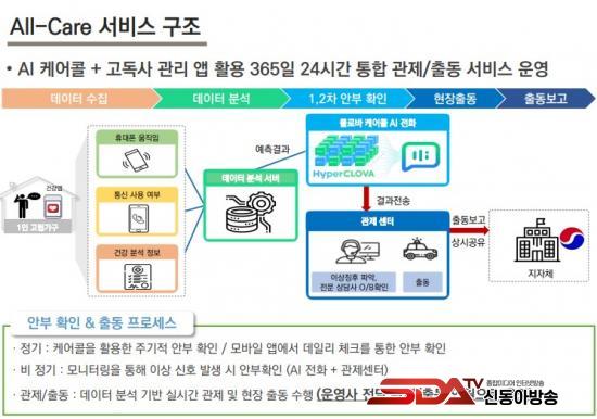 ¡®¾ÈºÎÈ®ÀÎ All Care ¼ºñ½º¡¯´Â ³×À̹öŬ¶ó¿ìµåÀÇ »ý¼ºÇü ÀΰøÁö´É(AI) ±â¹Ý ¾ÈºÎÀüÈ ¼ºñ½º ¡®Å¬·Î¹Ù ÄɾîÄÝ¡¯À» Ȱ¿ëÇØ ¿ù 2ȸ Á¤±âÀûÀÎ ÀüÈ·Î À§±â »óȲÀ» °¨ÁöÇÏ°í ´Ù¾çÇÑ º¹Áö ¿å±¸¸¦ ÆÄ¾ÇÇÏ´Â ½Ã½ºÅÛÀÌ´Ù.