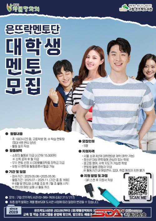 Àº¶ß¶ôµµ¼°üÀº ¿À´Â 30ÀϱîÁö ¡®Àº¶ß¶ô ¸àÅä´Ü¡¯ÀÇ ´ëÇлý ¸àÅ並 ¸ðÁýÇÑ´Ù. Ȱµ¿ ±â°£ÀÎ 7¿ùºÎÅÍ 11¿ù±îÁö ÇØ¿Ü¿¬¼ö, ÀÔ´ë, Ãë¾÷ ¿¹Á¤ÀÚ¸¦ Á¦¿ÜÇϰí, û¼Ò³â ¸àÅ丵¿¡ °ü½É ÀÖ´Â ¼¿ï ¼ÒÀç 4³âÁ¦ ´ëÇлý ´©±¸³ª Áö¿øÇÒ ¼ö ÀÖ´Ù. ¼±Á¤µÈ ¸àÅä¿¡°Ô´Â ¼ÒÁ¤ÀÇ È°µ¿ºñ°¡ Áö±ÞµÇ¸ç, ¿ì¼öȰµ¿ÀÚ¿¡°Ô´Â ȶºÒÀåÇÐȸ ÀåÇбݵµ ¼ö¿©µÈ´Ù.