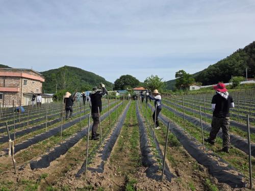 Àϼյ½±â¿¡´Â Áø¾ÈÀ¾À» ºñ·ÔÇØ ³óÃÌȰ·Â°ú, »çȸº¹Áö°ú, °¡Á·Çູ°ú ¼Ò¼Ó Á÷¿ø 30¿©¸íÀÌ ÇÔ²² Âü¿©ÇØ ³óÀÛ¾÷ÀÌ ¾î·Á¿î ³ó°¡¸¦ À§ÇØ ÃÑ 1,500ÆòÀÇ ³óÁö¿¡ °íÃß ÁöÁÖ¸ñ ¼¼¿ì±â¸¦ ÁøÇàÇß´Ù.
