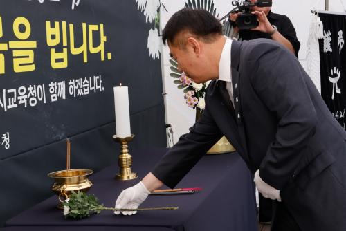 ÀÌÁ¤¼± ±³À°°¨Àº ¡°ÇÑ ¾ÆÀ̸¦ À§ÇØ Çå½ÅÇß´ø ¼±»ý´ÔÀÇ »îÀ» ±â¾ïÇϸç, °íÀÎÀÇ ¸íº¹À» ºô°í À¯°¡Á·°ú Çб³ ±¸¼º¿øµé²² ±íÀº À§·ÎÀÇ ¸»¾¸À» ÀüÇÑ´Ù¡±¸ç ¡°ÀÌ·¯ÇÑ ºñ±ØÀÌ ´õ ÀÌ»ó ¹Ýº¹µÇÁö ¾Êµµ·Ï ±¤ÁÖ±³À°Ã»Àº ±³»ç°¡ Á¸Áß¹Þ°í ¾ÈÀüÇÏ°Ô ±³À°ÇÒ ¼ö Àִ ȯ°æÀ» ¸¸µå´Âµ¥ ´õ¿í Èû¾²°Ú´Ù¡±°í ¹àÇû´Ù.