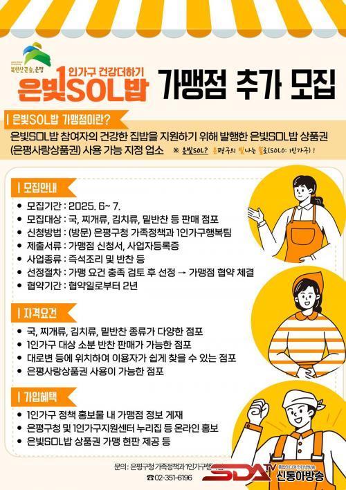¡®ÀººûSOL¹ä¡¯Àº ÀºÆò±¸ÀÇ ºû³ª´Â 1Àΰ¡±¸(SOLO)¿¡ °Ç°ÇÑ Áý¹äÀ» Áö¿øÇÑ´Ù´Â ÀǹÌÀÇ ±¸ ƯȻç¾÷ÀÌ´Ù. ºÒ±ÔÄ¢ÇÑ ½Ä½À°ü µî °Ç° µ¹º½ÀÌ ÇÊ¿äÇÑ 1Àΰ¡±¸¿¡ Á¤±âÀûÀÎ °Ç° ¸Ô°Å¸®¸¦ Á¦°øÇϰíÀÚ Áö¿ª¼Ò»ó°øÀΰú Çù¾àÀ» ü°áÇÏ¿© »ç¾÷À» ÁøÇàÇϰí ÀÖ´Ù.