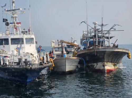 ¿ÀÀü 9½Ã 15ºÐ¿¡´Â ÇØ°æ ±¸Á¶´ë°¡ ÇöÀå¿¡ µµÂøÇÏ¿© ½ºÅ©·ù °íÁ¤ µî ¼öÁßÀÛ¾÷À» ½Ç½ÃÇÏ¿´°í, Ãß°¡·Î ¼·¿ÜµÈ ¿¹Àμ±(9.77Åæ,³¬½Ã¾î¼±)À» ÅëÇØ ¿ÀÀü 10½Ã°æ ħ¼ö ¾î¼±À» »ï±æÆ÷Ç×À¸·Î ¾ÈÀüÇÏ°Ô ¿¹ÀÎ ÀÔÇ×½ÃÄ×´Ù.
