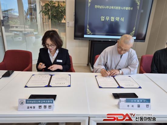[½Åµ¿¾Æ¹æ¼Û Àü³²³ªÁÖ=À̽ŵ¿±âÀÚ] Àü¶ó³²µµ³ªÁÖ±³À°Áö¿øÃ»Àº 6¿ù 5ÀÏ(¸ñ) ¿ÀÀü 11½Ã, ³ªÁÖºÒȸ»ç¿Í ÇÔ²² ÀüÅë»ê»ç¸¦ ±â¹ÝÀ¸·Î ÇÑ Àμº±³À° ¹× Á¤¼ ȸº¹ Áö¿øÀ» À§ÇÑ ¾÷¹«Çù¾à(MOU)¸¦ ü°áÇÏ¿´´Ù.