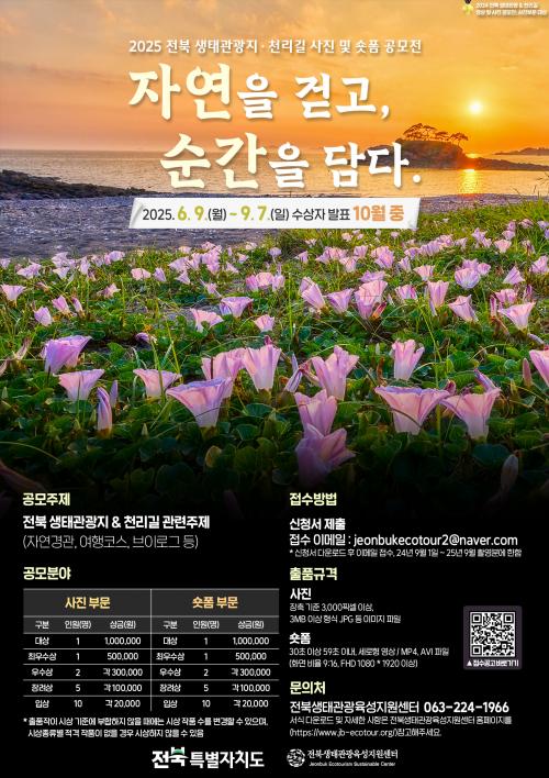 ÀÛǰ Á¢¼ö´Â ÀüºÏ»ýŰü±¤À°¼ºÁö¿ø¼¾ÅÍ ´©¸®Áý(www.jb-ecotour.org)¿¡¼ ½Åû¼¸¦ ³»·Á¹Þ¾Æ, ÀÀ¸ð ÀÛǰ°ú ÇÔ²² À̸ÞÀÏ(jeonbukecotour2@naver.