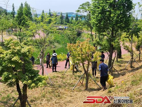 À̳¯ Çà»ç¿¡ Âü¿©ÇÑ Á÷¿ø 15¿© ¸íÀº ÇÏõ¿¡ ¹æÄ¡µÈ Æóºñ´Ò, ÇÃ¶ó½ºÆ½º´°ú °¢Á¾ ¾²·¹±â µî ¿À¿°¹°ÁúÀ» ¼ö°ÅÇϰí, ÇÏõ ÁÖº¯ ÀâÃʸ¦ Á¦°ÅÇÏ´Â µî ±¸½½¶¡À» È긮¸ç ȯ°æÁ¤ºñ¿¡ Èû½è´Ù.
