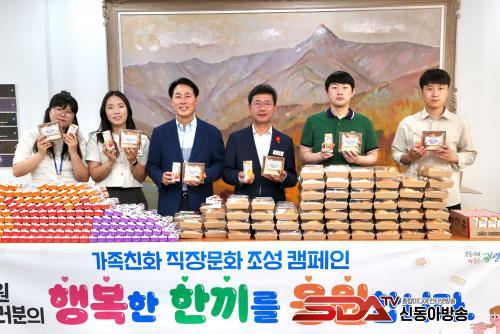 12ÀÏ ¿ÀÀü, ½Ãû º»Ã»°ú ÀÇȸ û»ç ÀÔ±¸¿¡¼´Â ¿©¼º°¡Á·°ú Á÷¿øµé°ú ÇÔ²² Á¤ÀÎÈ ½ÃÀåÀÌ Ãâ±ÙÇÏ´Â Á÷¿øµé¿¡°Ô Á÷Á¢ »§°ú À½·á¸¦ Àü´ÞÇÏ¸ç °Ý·ÁÇß´Ù. Á¤ ½ÃÀåÀº ¡°ÇູÇϰí ÇÔ²² ¿ôÀ» ¼ö ÀÖ´Â Á÷Àå ºÐÀ§±â¸¦ Á¶¼ºÇÏÀÚ¡±¸ç À̹ø Ä·ÆäÀÎÀÇ Àǹ̸¦ °Á¶Çß´Ù.