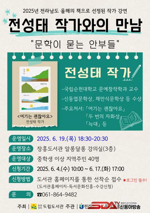 Àü¼ºÅ ÀÛ°¡´Â ¡®2025³â Àü¶ó³²µµ ¿ÃÇØÀÇ Ã¥¡¯¹®ÇÐ ºÎ¹®¿¡ ¼±Á¤µÈ µµ¼ ¡º¿©±â´Â ±¦Âú¾Æ¿ä¡»ÀÇ ÀúÀÚ·Î, ±¹¸³¼øÃµ´ëÇб³ ¹®¿¹Ã¢ÀÛÇаú ±³¼öÀÌÀÚ ´Ù¼öÀÇ ÀÛǰÀ» Àú¼úÇÑ ÀÛ°¡ÀÌ´Ù.