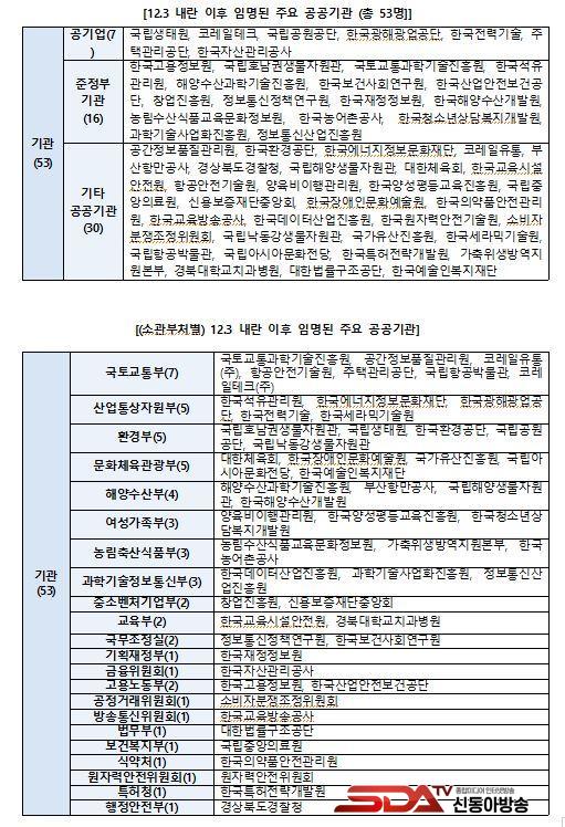 ÀÌ¿Í ÇÔ²², 12¿ù 3ÀÏ ÀÌÈÄ ÀÓ¸íµÈ °ø°ø±â°üÀå 53¸íÀÇ ¼Ò°ü ÁÖ¹« ºÎó¸¦ ºÐ¼®ÇÑ °á°ú, Àλ簡 ƯÁ¤ ºÎó¿¡ ÁýÁßµÈ ¾ç»óÀÌ ¶Ñ·ÇÇÏ°Ô ³ªÅ¸³µ´Ù. ±¹Åä±³ÅëºÎ°¡ 7¸íÀ¸·Î °¡Àå ¸¹¾Ò°í, »ê¾÷Åë»óÀÚ¿øºÎ¡¤È¯°æºÎ¡¤¹®È­Ã¼À°°ü±¤ºÎ°¡ °¢°¢ 5¸í¾¿À¸·Î µÚ¸¦ À̾ú´Ù. ¡ãÇØ¾ç¼ö»êºÎ 4¸í, ¡ã¿©¼º°¡Á·ºÎ¡¤³ó¸²Ãà»ê½ÄǰºÎ¡¤°úÇбâ¼úÁ¤º¸Åë½ÅºÎ °¢ 3¸í, ¡ãÁß¼Òº¥Ã³±â¾÷ºÎ¡¤±³À°ºÎ¡¤±¹¹«Á¶Á¤½Ç¡¤°í¿ë³ëµ¿ºÎ °¢ 2¸í, ¡ã±âȹÀçÁ¤ºÎ‧±ÝÀ¶À§¿øÈ¸‧°øÁ¤°Å·¡À§¿øÈ¸¡¤¹æ¼ÛÅë½ÅÀ§¿øÈ¸¡¤¹ý¹«ºÎ¡¤º¸°Çº¹ÁöºÎ¡¤½Ä¾à󡤿øÀڷ¾ÈÀüÀ§¿øÈ¸¡¤Æ¯Çãû¡¤ÇàÁ¤¾ÈÀüºÎ´Â °¢°¢ 1¸í¾¿À̾ú´Ù. °¡Àå ¸¹Àº ¾Ë¹Ú±â Àλ縦 ÀÚÇàÇÑ ±¹ÅäºÎ, »ê¾÷ºÎ, ȯ°æºÎ, ¹®Ã¼ºÎ Àå°ü¿¡°Ô´Â ±×¿¡ ´ëÇÑ Ã¥ÀÓÀ» ³¡±îÁö ¹°¾î¾ß ÇÑ´Ù°í °­Á¶Çß´Ù.