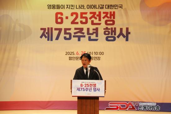 [½Åµ¿¾Æ¹æ¼Û °æ³²ÇÔ¾È=À̽ŵ¿±âÀÚ] ÇԾȱºÀº 6¿ù 25ÀÏ ¿ÀÀü 10½Ã, ÇԾȹ®È­¿ø ´ë°ø¿¬Àå¿¡¼­ ¡®¿µ¿õµéÀÌ ÁöŲ ³ª¶ó À̾°¥ ´ëÇѹα¹¡¯À̶ó´Â ÁÖÁ¦·Î 6.25ÀüÀï Á¦75Áֳ⠱â³ä½ÄÀ» ¾ö¼÷ÇÏ°Ô °³ÃÖÇß´Ù.