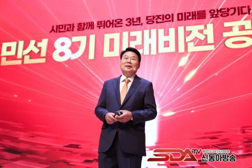 ÀÌ¾î »ó¿µµÈ ¿µ»ó¿¡¼´Â Áö³ 3³â°£ ´çÁø½Ã°¡ ÃßÁøÇØ ¿Â ÁÖ¿ä Á¤Ã¥°ú º¯È¸¦ ½Ã°¢ÀûÀ¸·Î ´ã¾Æ³» ½Ã¹ÎµéÀÇ Å« È£ÀÀÀ» ¾ò¾ú´Ù. ƯÈ÷, ¿À¼ºÈ¯ ´çÁø½ÃÀåÀº ¡®´çÁøÀÇ ¹Ì·¡ºñÀü'À» ¹ßÇ¥ÇÏ¸ç ¹Î¼±8±â ÈĹݱâ ÁÖ¿ä »ç¾÷ÀÇ ÃßÁø ¹æÇâ°ú ´çÁøÀÌ ³ª¾Æ°¥ ±¸Ã¼ÀûÀΠû»çÁøÀ» Á¦½ÃÇß´Ù.