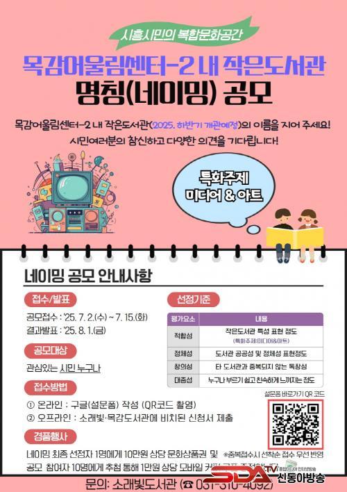 À̹ø ¸íĪ °ø¸ð´Â ¸ñ°¨ Áö¿ªÀÇ »õ·Î¿î º¹ÇÕ¹®È°ø°£ÀÌ µÉ ÀÛÀºµµ¼°ü¿¡ ½Ã¹Î Âü¿©¸¦ Á¦¾ÈÇØ °³°ü È«º¸ È¿°ú¸¦ ³ôÀ̰í Áö¿ª ÁÖ¹ÎÀÇ °ü½ÉÀ» À¯µµÇϰíÀÚ ¸¶·ÃµÆ´Ù.