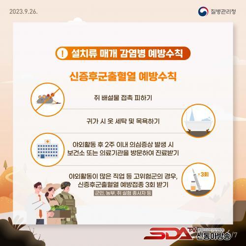 ¿¹¹æÁ¢Á¾°ú ÇÔ²² °¨¿°À» ¸·±â À§Çؼ´Â µéÁ㠹輳¹°°ú Á¢ÃËÇÏÁö ¾Êµµ·Ï Á¶½ÉÇϱâ, Àܵð¹ç À§¿¡ À̺ÒÀ̳ª ¿Ê ³ÎÁö ¾Ê±â, ¾ß¿ÜȰµ¿ ½Ã ±ä ¿Ê, Àå°©, ¸¶½ºÅ©, ÀåÈ µî º¸È£À屸 Âø¿ëÇϱâ, ±Í°¡ ÈÄ Áï½Ã »þ¿öÇÏ°í ¿Ê ¼¼Å¹Çϱ⠵îÀÇ ±âº» ¼öÄ¢À» öÀúÈ÷ ÁöŰ´Â °ÍÀÌ Áß¿äÇÏ´Ù.