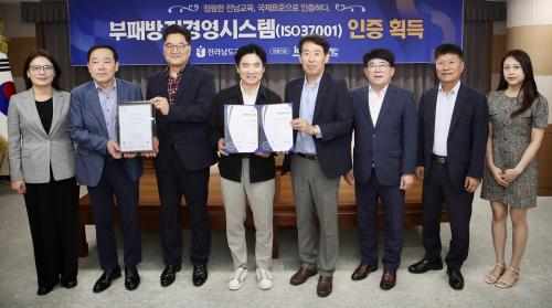 ½É»ç±â°üÀÎ (Àç)Çѱ¹Ç°ÁúÀç´ÜÀº Àü³²±³À°Ã»ÀÇ ºÎÆÐ¹æÁö Á¤Ã¥ ÃßÁø ÀÇÁö, ½ÇÇà ü°èÀÇ ÀûÇÕ¼º, Àü Á÷¿øÀÇ ÀÎ½Ä ¼öÁØ µîÀ» Á¾ÇÕ Æò°¡ÇØ ÀÎÁõÀ» ÃÖÁ¾ ½ÂÀÎÇϰí, 16ÀÏ Àü³²±³À°Ã»¿¡ ÀÎÁõ¼¸¦ Àü´ÞÇß´Ù.