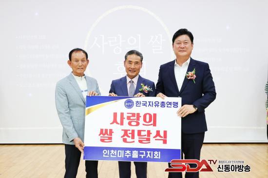 ÇÑÆí, Çѱ¹ÀÚÀ¯ÃÑ¿¬¸Í ÀÎõ¹ÌÃßȦ±¸Áöȸ´Â À̹ø ÃëÀӽĿ¡¼­ ÃàÇÏ È­È¯ ´ë½Å ¹ÞÀº ½Ò 10kg 92Æ÷¸¦ ¹ÌÃßȦ±¸¿¡ ±âºÎÇßÀ¸¸ç, ½ÒÀº Çл곪´®Àç´ÜÀ» ÅëÇØ Áö¿ªÀÇ ¾î·Á¿î ÀÌ¿ôµé¿¡°Ô Àü´ÞµÉ ¿¹Á¤ÀÌ´Ù.