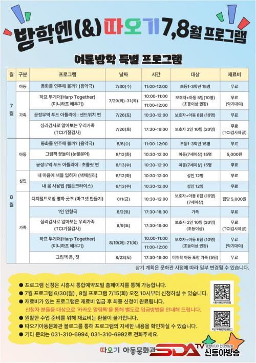 ¼¼ºÎ ÇÁ·Î±×·¥À¸·Î´Â µ¿È¸¦ ¿¬ÁÖÇØ º¼±î(¾Æµ¿/7,8¿ù), ÇÏÇÁÅõ°Ô´õ(°¡Á·/7,8¿ù), °øÁ¤¹«¿ª Ǫµå ¾ÆÆ²¸®¿¡(¾Æµ¿/7,8¿ù), ½É¸®°Ë»ç·Î ¾Ë¾Æº¸´Â ¿ì¸®°¡Á·(°¡Á·/7,8¿ù), ³» ¸¶À½¿¡ »öÀ» ÀÔÈ÷ÀÚ(¼ºÀÎ/8¿ù), ³» ¸ö »ç¿ë¹ý(¼ºÀÎ/8¿ù), µðÁöÅеå·ÎÀ× ¸íÈ ±ÂÁî(°¡Á·/8¿ù), 1ÀÎ ÀÎÇü±Ø(°¡Á·/8¿ù), ±×¸²Ã¥ ¸ö, Áþ(°¡Á·/8¿ù) µîÀ¸·Î ±¸¼ºµÅ ÀÖÀ¸¸ç, °¢ ºÐ¾ß Àü¹® °»çÁøÀÌ ÇÁ·Î±×·¥À» ÁøÇàÇÑ´Ù.