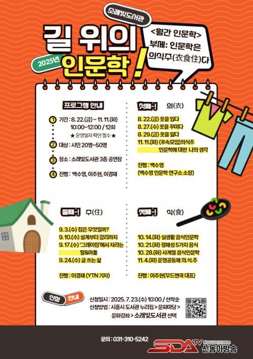 [½Åµ¿¾Æ¹æ¼Û ½ÃÈï½Ã=À̽ŵ¿±âÀÚ] ½ÃÈï½Ã ¼Ò·¡ºûµµ¼­°üÀÌ ¹®È­Ã¼À°°ü±¤ºÎ°¡ ÁÖÃÖÇϰí Çѱ¹¹®È­¿¹¼úÀ§¿øÈ¸°¡ ÁÖ°üÇÏ´Â ¡®2025³â ±æ À§ÀÇ Àι®ÇС¯ °ø¸ð»ç¾÷¿¡ ¼±Á¤µÅ ¿À´Â 8¿ù 22ÀϺÎÅÍ 11¿ù 11ÀϱîÁö ÃÑ 12ȸ¿¡ °ÉÃÄ Àι®ÇÐ ÇÁ·Î±×·¥ ¡®¿ù°£ Àι®ÇÐ: Àι®ÇÐÀº ÀǽÄÁÖ(ëýãÝñ¬)´Ù¡¯¸¦ ¿î¿µÇÑ´Ù.